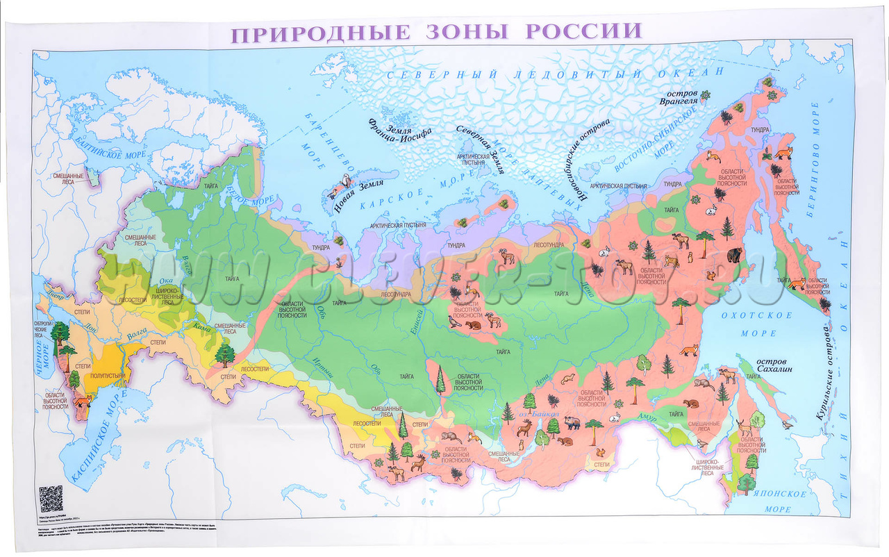 - Большая карта "Природные зоны России" (1420 х 900 мм) на тканевой основе с дополнительной энциклопедической информацией, доступной по QR-коду