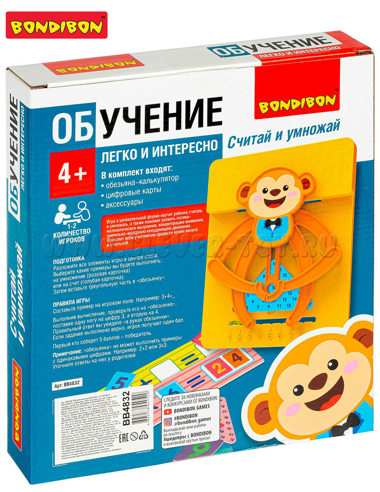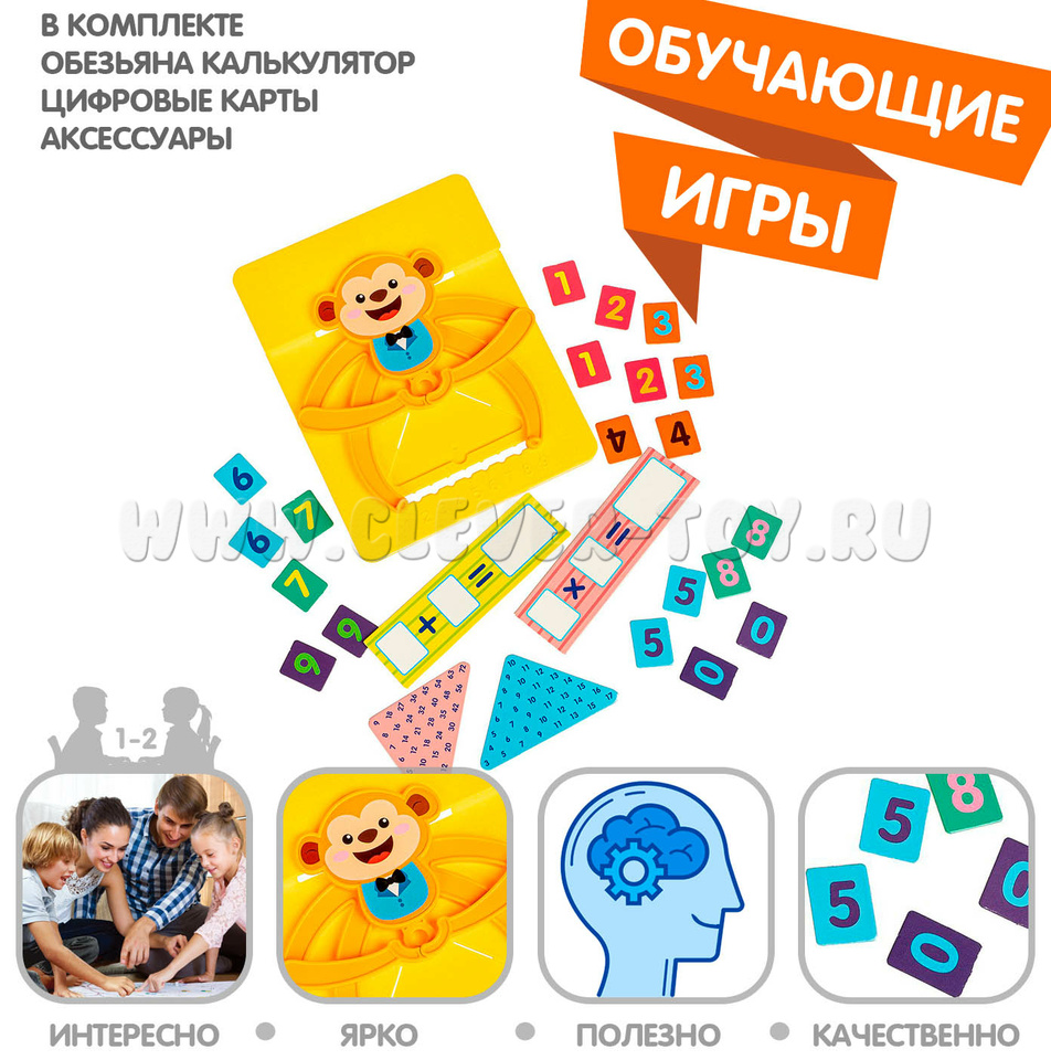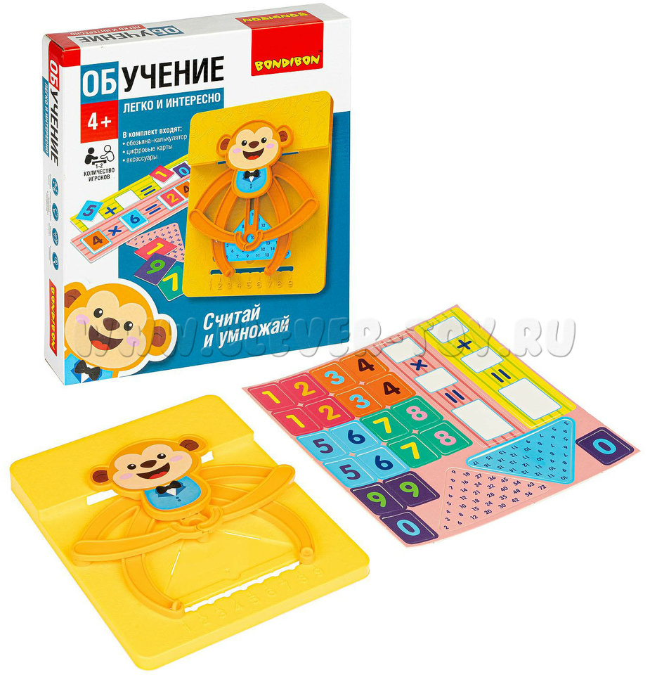 Настольная обучающая игра «Считай и умножай» Обезьянка из серии обучение легко и интересно поможет вашим детям разобраться в мире цифр. Игра предназначена для обучения счету детей дошкольного возраста. С Обучающей игрой «Считай и умножай» проведите увлекательный урок арифметики. Веселая обезьянка поможет вам проверить правильное решение.