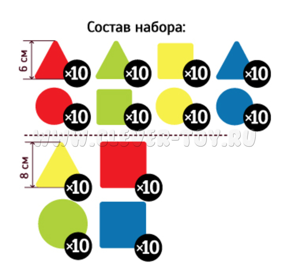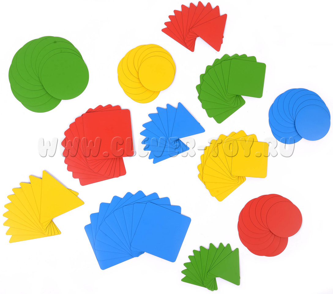 Набор магнитных карточек "Геометрические фигуры: изучаем форму, цвет, размер" (120 карточек, 4 цвета).