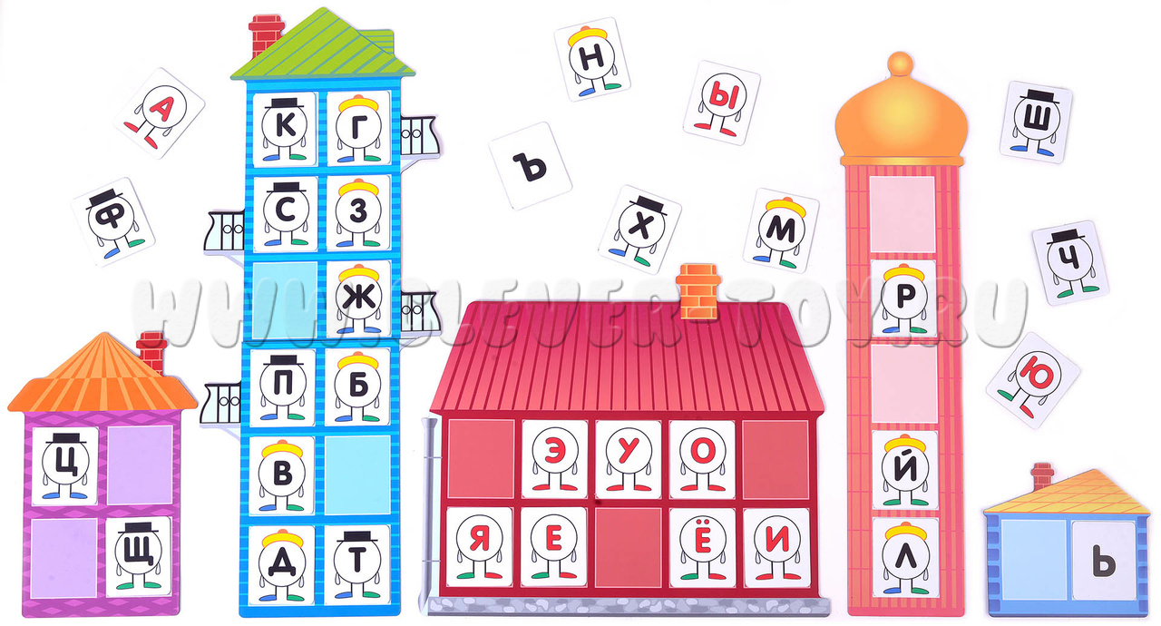 Набор магнитных полей и карточек "Звуко-буквенный разбор "Домики"