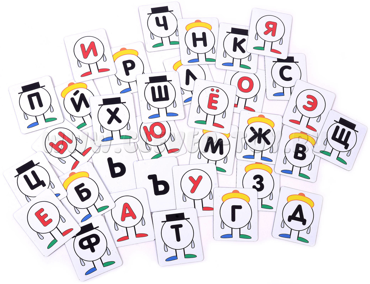 В наборе 5 магнитных полей-домиков и 33 магнитные карточки.