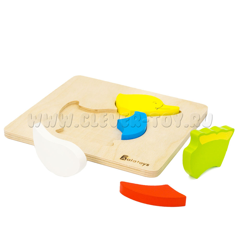 • деревянную рамку-вкладыш, благодаря которой пазл становится «объёмным» и превращается в сортер;