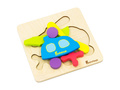 Развивающая игрушка пазл «Вертолёт» представляет собой деревянную основу с углублениями для размещения деталей вертолёта. Только правильно подобрав детали по форме и размеру, у ребёнка получится сложить правильные пазлы.
