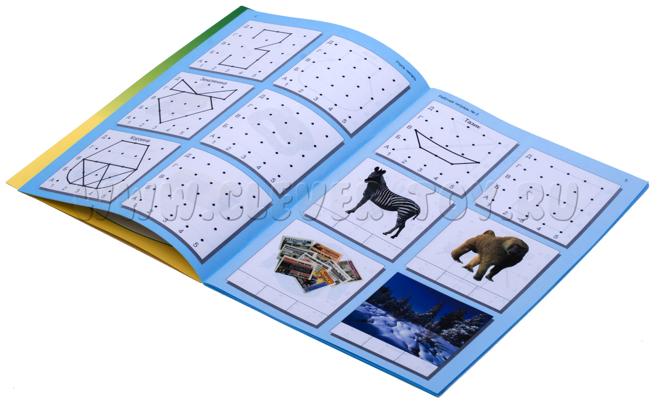 Во второй рабочей тетради приведены задания для ознакомления с согласными: Б, З, Д, Г, Ш, Ж, Л, Н, Р, Ф,Ц, Ч, Щ