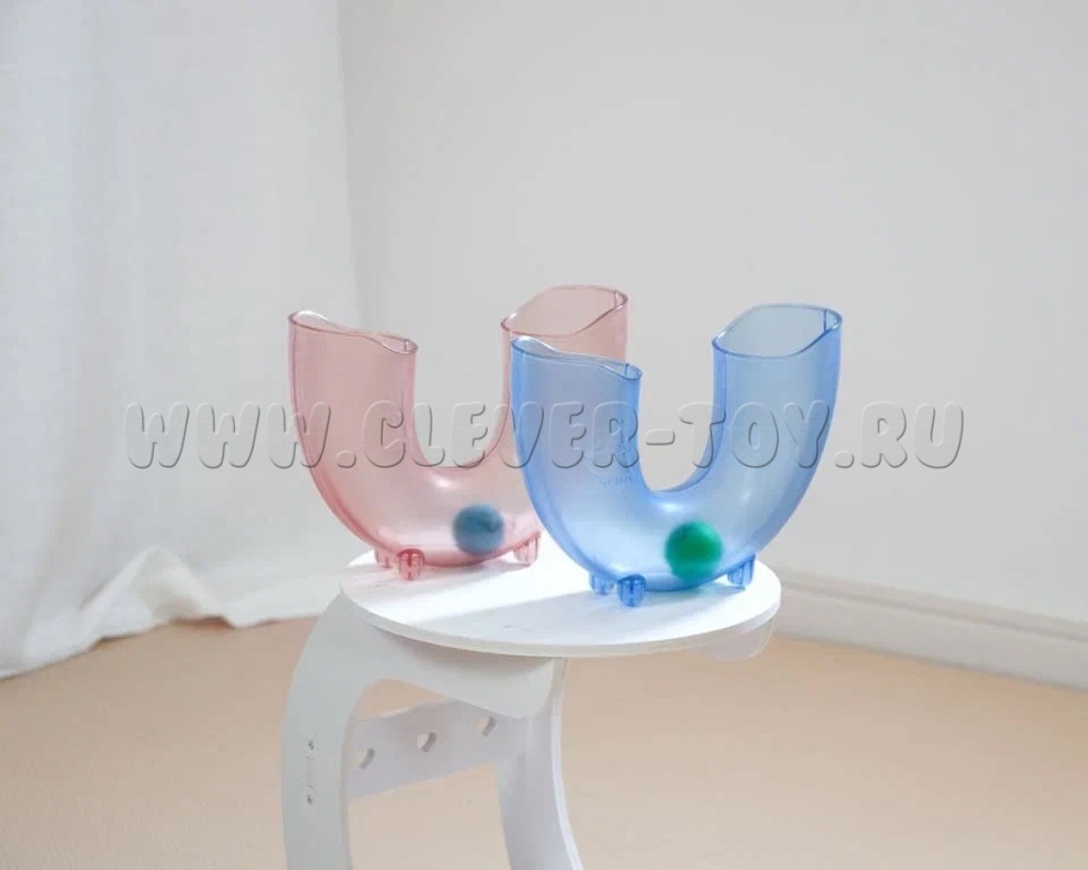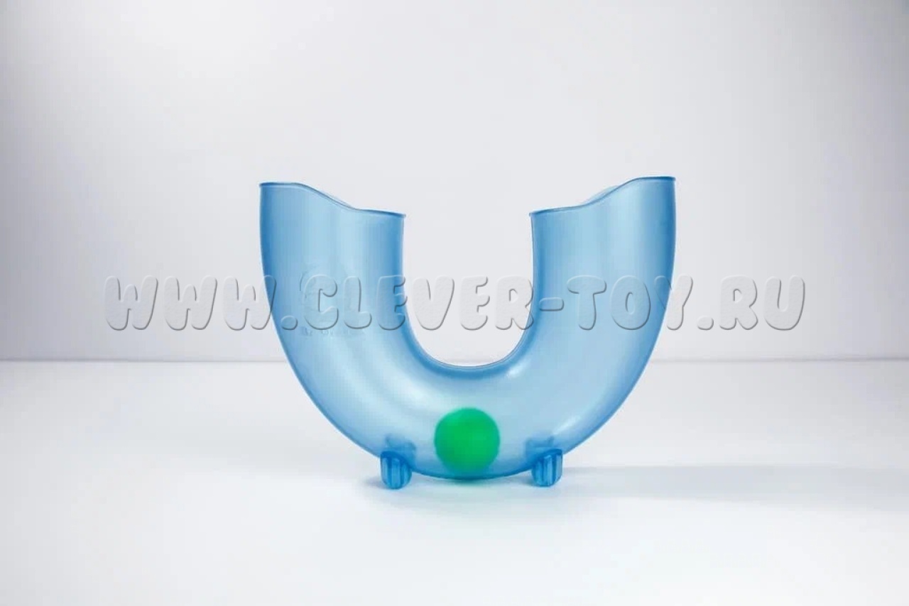 В набор входит голубая труба U-образной формы 23,5 х 8, х 17,5 см. и три шарика.