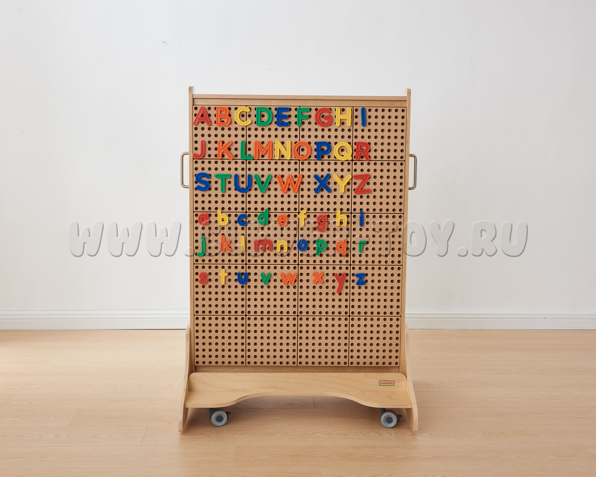 Игровой набор для знакомства с английским алфавитом, является дополнением к STEM-стене. Подходит для индивидуальных и групповых занятий. Буквы выполнены в ярких цветах (синий, красный, оранжевый, желтый, зеленый), что позволяет легко разделять их и сортировать. Дети могут составлять слога и слова из букв, а также практиковаться в их произношении.